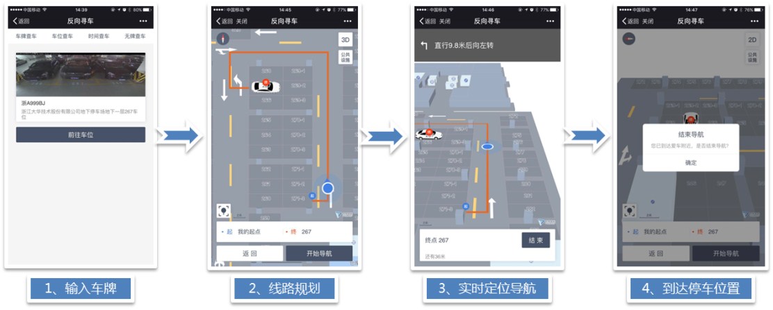 可視化反向?qū)ぼ嚕С职窜嚺铺?、進(jìn)場時間段、無牌車、車位號快速尋車,節(jié)約車主尋車時間;iBeacon(藍(lán)牙)定位系統(tǒng),實現(xiàn)實時定位導(dǎo)航尋車,尋車體驗更佳。